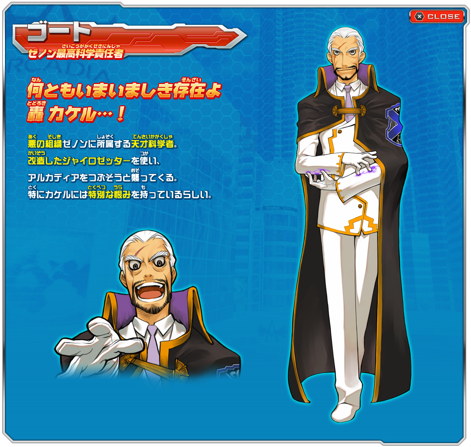 ジャイロゼッターを悪用し、アルカディアと敵対する悪の組織。クルマを改造して破壊工作などを行い、人々に恐怖を与えている。